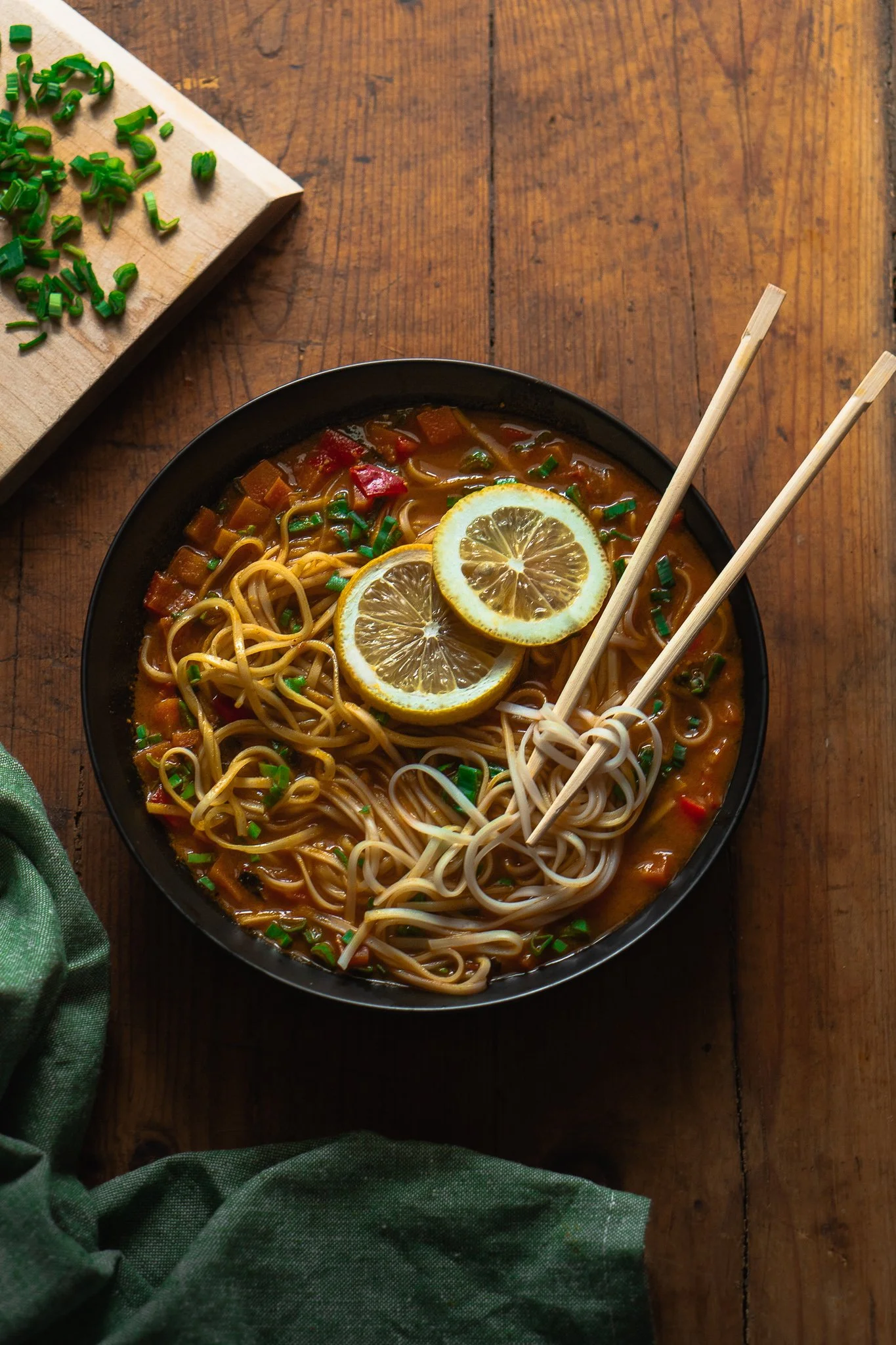 Thukpa is the quintessential Tibetan comfort food—a hearty, warming noodle soup perfect for the high-altitude climate. It features a rich, savory broth, often made from slow-simmered beef bone marrow for deep flavor and nutritional richness.